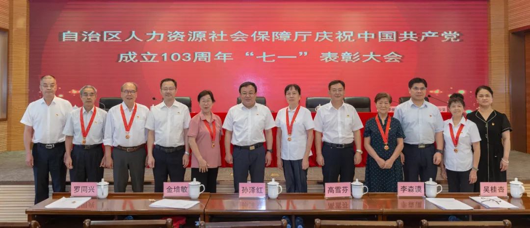 6月27日,在即将迎来中国共产党成立103周年之际,自治区人力资源社会保障厅举行“光荣在党50年”纪念章颁发仪式,向高雪芬等6名老党员代表颁发“光荣在党50年”纪念章并致以崇高的敬意。今年,自治区人力资源社会保障厅有19名老党员获颁“光荣在党50年”纪念章,截至目前,全厅共有81名老党员获此殊荣。