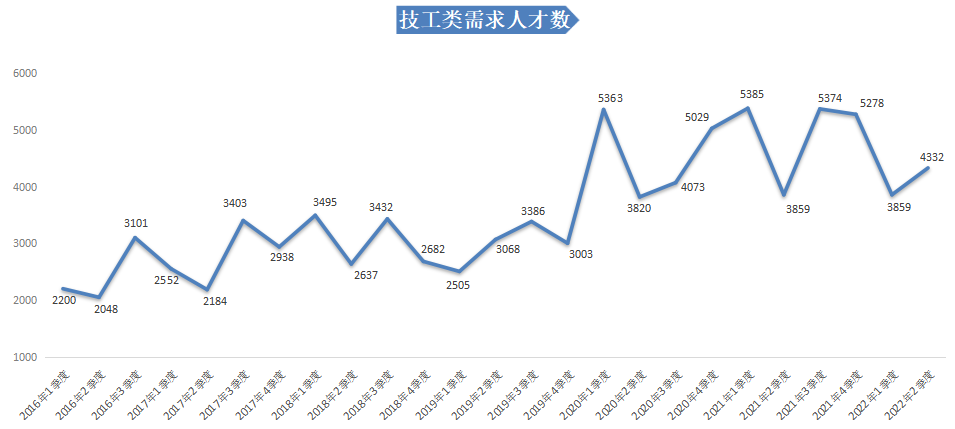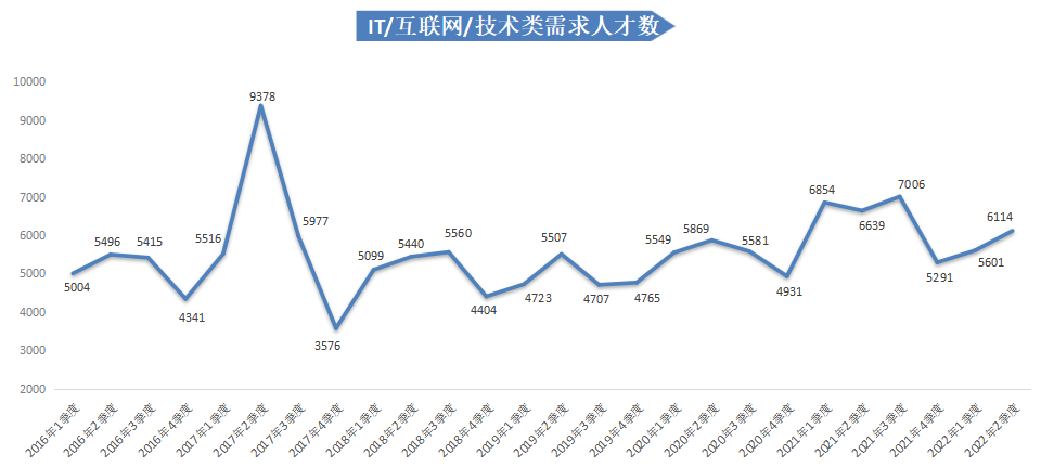 2022年第二季度IT/互联网/技术类职位人才供求情况表