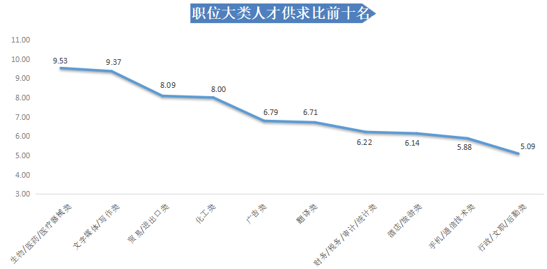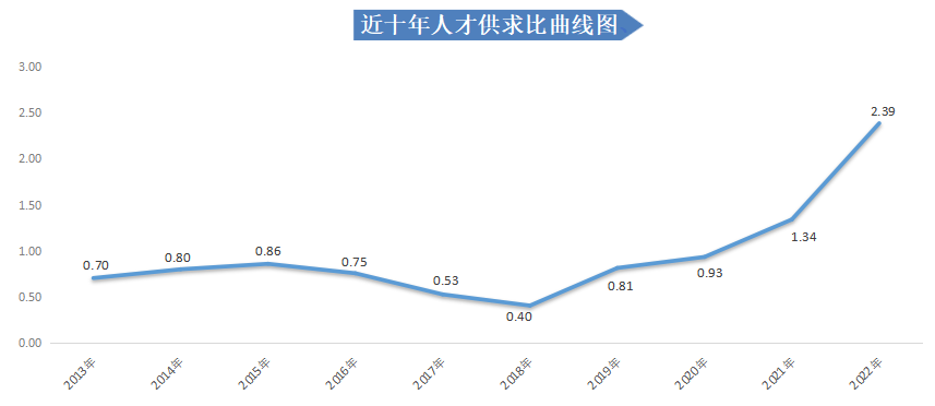 近十年各年度人才供求比变化曲线图如下: