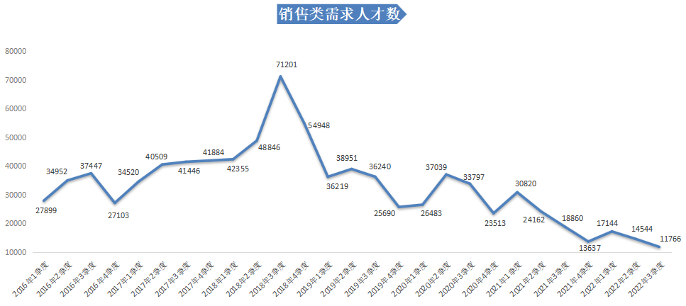 1.销售类职位人才需求持续下跌