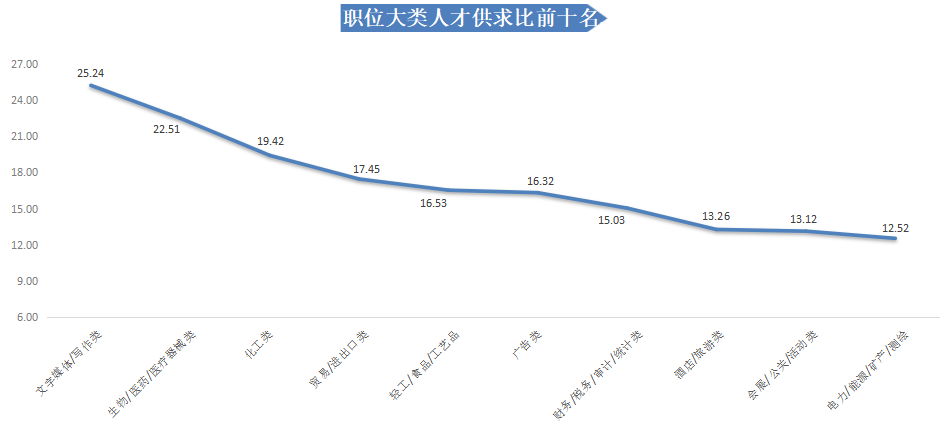 职位大类人才供求比前十位见下图: