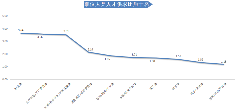 职位大类人才供求比后十位见下图: