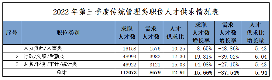 3.传统管理类职位人才供应量增长势头明显