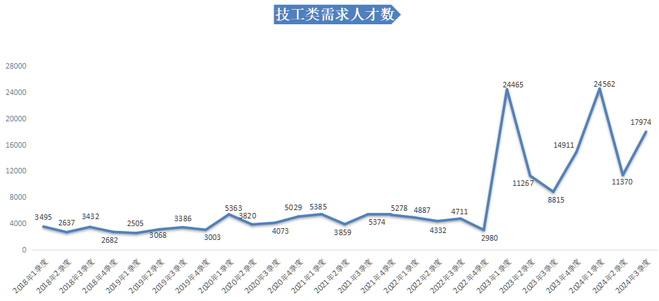 (二)人才需求量同比大幅度增长,环比小幅下滑