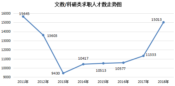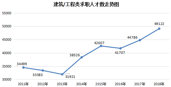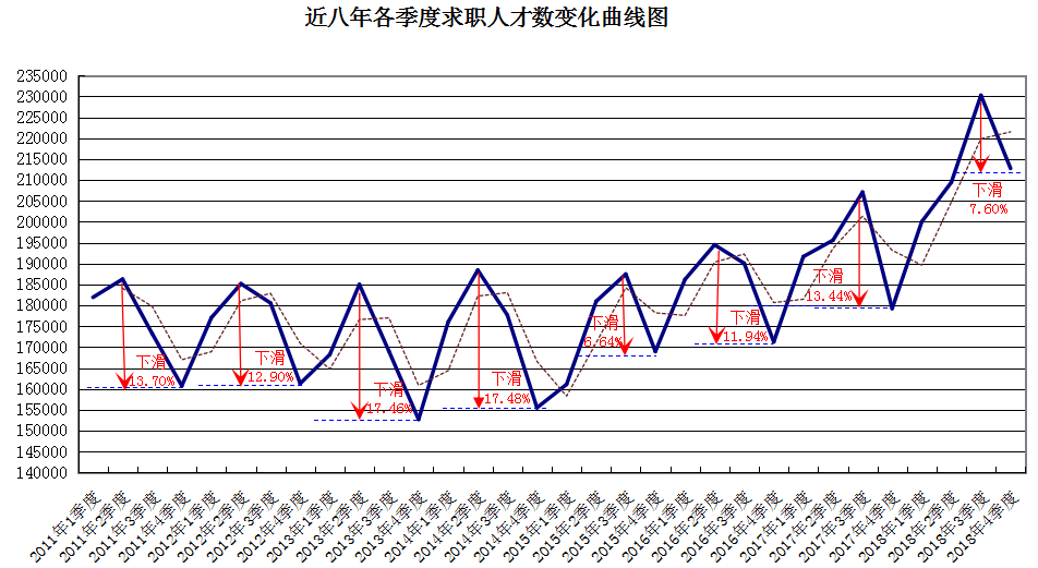 广西人才网联系统中人才供应总量保持平稳增长,2018年度求职人才数为430239人,与上年度相比小幅增长7.40%。其中第三季度求职人才数达到近八年的季度最高值。