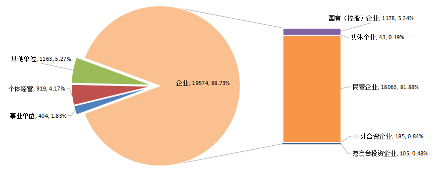 2018年广西人才网联系统中,用人单位数量达到22060家,与上年度相比增长9.90%,用人单位中企业共有19574家,占比88.73%,与上年度相比增长7.41%,其中国有(控股)企业达到1178家,比上年度增长12.51%,而民营企业达到18063家,比上年度增长7.20%,占比高达81.88%,是人才需求的主要来源。