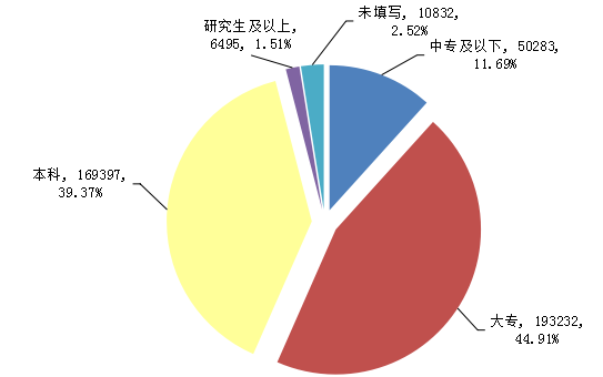 文学专业的求职人才合计为31224人,占比7.26%,比上年度占比增加0.55个百分点,其中艺术类和外国语言文学类专业人才较多,占比分别为3.03%1.93%。