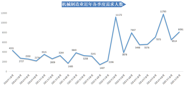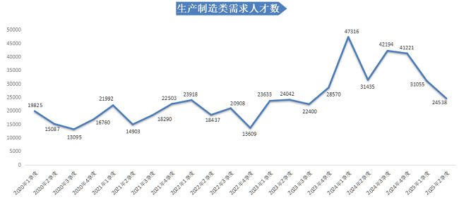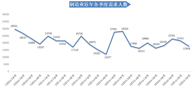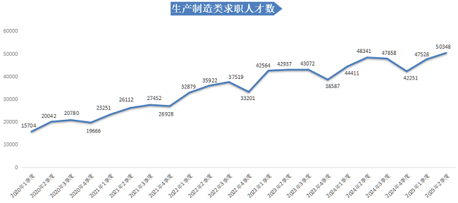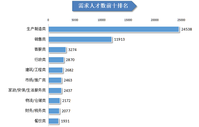 另外,有9个行业类别的人才需求相较于上年同期实现不同程度的增长。制造业的人才需求增长量排名第一,需求人才数为17648人,比上年同期增加1322人,同比增长8.10%。