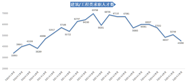 2025年第二季度,广西人才网中的人才供应量与上年同期相比虽有小幅下滑,但自2025年起,已连续两个季度实现增长。本季度求职人才数为464545人,与上年同期相比减少15280人,同比下滑3.18%,但与上季度相比环比增长8.51%。