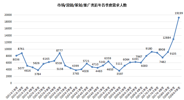 1. 市场/营销/策划/推广类职位人才需求同比大幅增长
