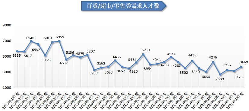 6.百货/超市/零售类职位人才需求增长乏力