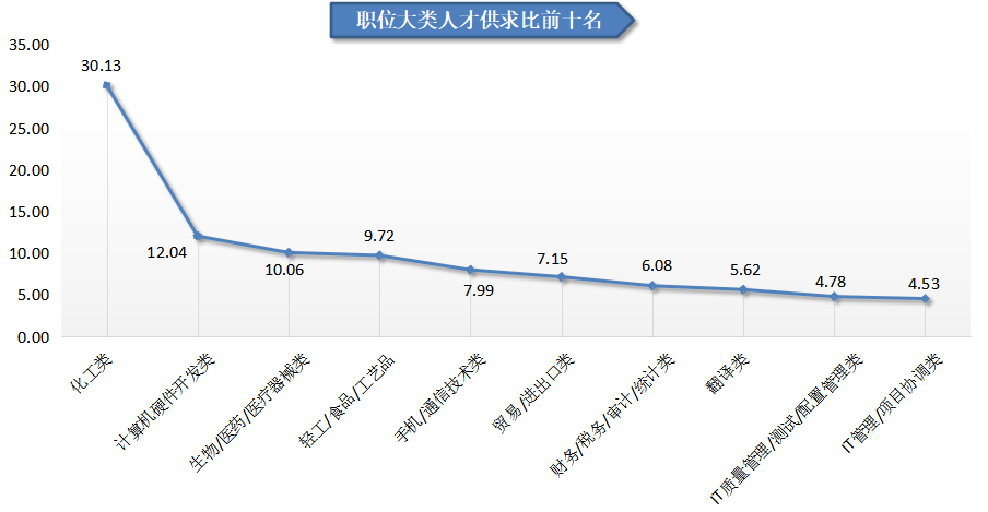 人才供求比前十位见下图: