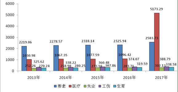 图5 近五年社会保险参保人数 单位:万人