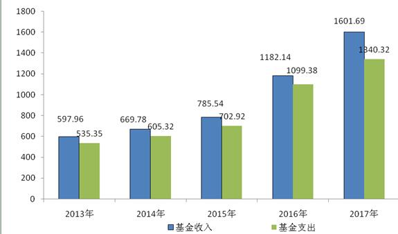 图6 近五年社会保险基金收支情况 单位:亿元