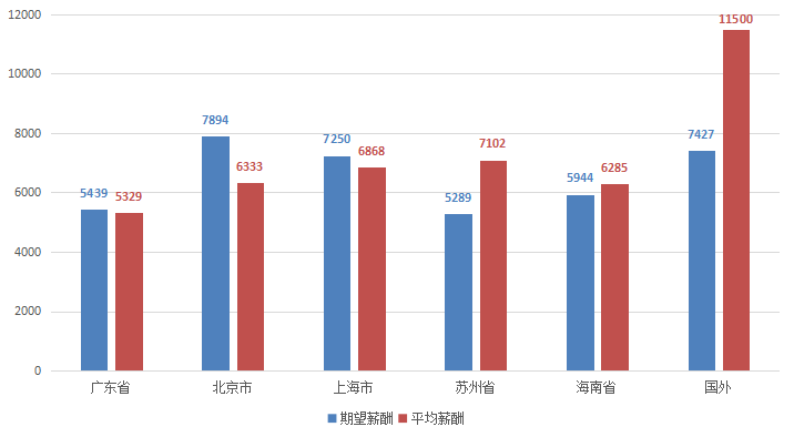 注4:职位平均薪酬指的是所属职位类别中用人单位发布职位的薪酬样本加权平均值,不代表单个职位的实际薪酬,例如高级管理类职位平均薪酬为14072元/月,但其有很多副总以上级别的高薪职位薪酬更高。期望薪酬指的是求职者期望从事职位类别的薪酬样本加权平均值。