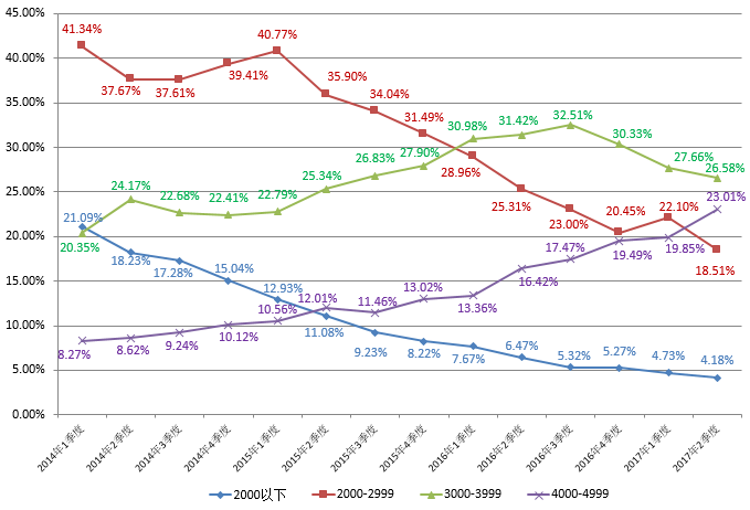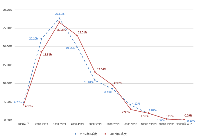 注3:本报告数据来源于广西人才网联系统,经去除重复、不完整以及无效数据、违背国家法律法规的不合理数据,限定单个职位样本量个数(单个职位薪酬数据限定为至少25个样本,低于25个样本的职位薪酬数据不予统计,行业惯例为7个)等数据处理方式,确定2017年二季度超过15万个符合要求的职位薪酬数据信息作为统计样本。在统计指标上,同时采用平均薪酬和分位薪酬统计方式。