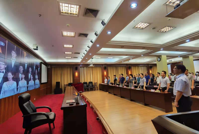 2021年6月30日,在庆祝中国共产党成立100周年之际,自治区社保中心党委书记、主任罗俊鑫同志结合党史学习教育,为中心全体党员干部讲授学习贯彻《中国共产党章程》专题党课。专题党课在嘹亮的歌声中开始,全体党员干部合唱《没有共产党就没有新中国》,通过歌声重温党的光辉历史,讴歌党的丰功伟绩,表达对党的绝对忠诚。