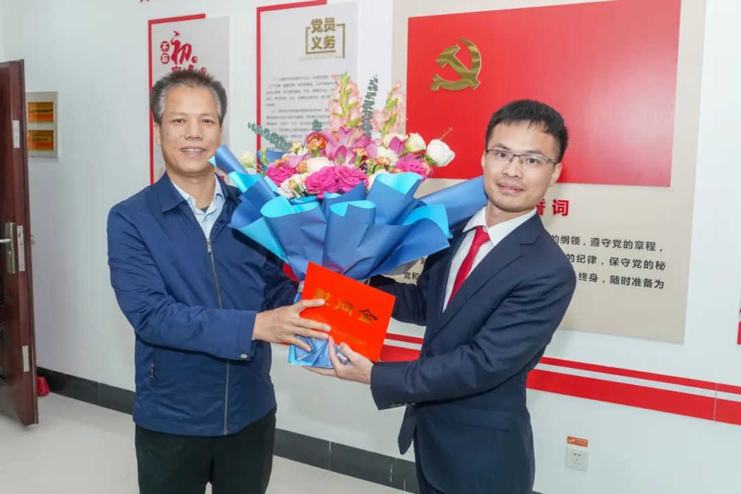 厅党组书记、厅长唐标文(右一)慰问享受政府特殊津贴专家、广西铁路投资集团有限公司董事长、正高级工程师陈华梁