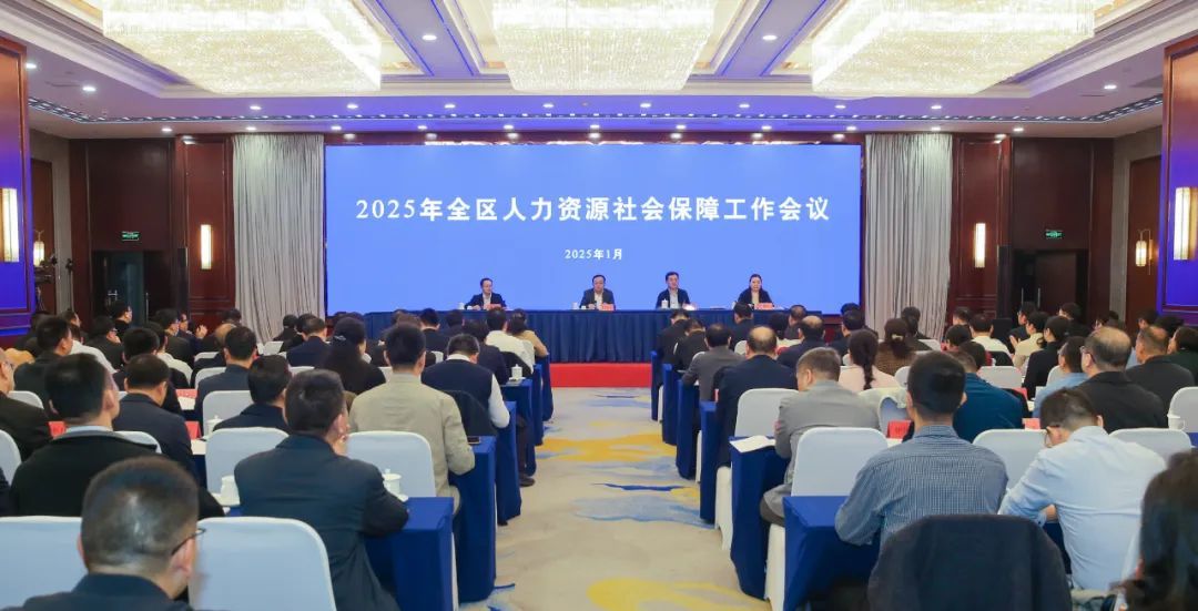 会议对2024年工作进行了全面总结。2024年,全区人社系统深入学习贯彻习近平总书记视察广西时关于“解放思想、创新求变,向海图强、开放发展”的重要讲话精神,在人社部的精心指导下,在自治区党委、政府的坚强领导下,全力打好“稳就业、强保障、聚人才、筑和谐、优服务”组合拳,办成了一系列大事要事、急事难事。人社部下达的19项计划指标我区已全部提前完成,服务中心大局展现“人社担当”;19次在全国会议上作经验发言;全国人社系统宣传工作座谈会、人事考试工作会议、“一带一路”技能筑梦行动推进会、城乡居民养老保险工作推进会在广西成功举办;“技能中国行2024—走进广西”、广西壮族自治区第三届职业技能大赛和海内外高端人才创新创业成果交流活动成功举办,人社重大活动提升“广西影响”;创新开展医疗护理员培训和规范管理,探索“广西样板”;创业担保贷款发放量增长3倍,达到20.58亿元,工作“出新出彩”;实施“就业暖心·桂在行动”专项服务活动,打造“万事通达·就在广西”品牌,公共就业服务体系建设“可圈可点”;人才体制机制改革持续深化,“近悦远来”的人才环境进一步优化;我区在全国保障农民工工资支付工作考核中实现“5连A”,治理欠薪工作取得新成效;社会保障卡居民服务“一卡通”条例立法和应用工作迈出新步伐,发布“8+N”应用场景;广西“数智人社”信息系统全面上线,人社信息系统建设提供“广西模式”;织密扎牢社会保障网,人社为民底色“更加厚实”。创业担保贷款、社保卡居民服务“一卡通”、新时代和谐劳动关系等3项工作获评2024年度全区改革攻坚优秀成果。厅官方网站被评为自治区卓越等级,广西人社客户端获评“十佳”政务新媒体,均排名全区第1。政务信息首次在全区排名第1,全国人社系统排名第6。