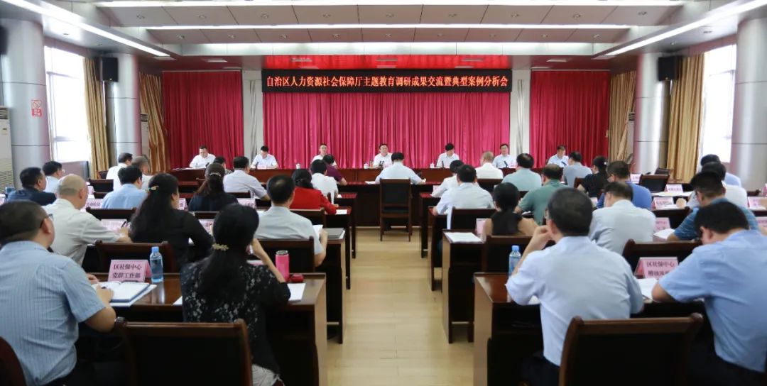 近日,自治区人力资源社会保障厅召开学习贯彻习近平新时代中国特色社会主义思想主题教育调研成果交流暨典型案例分析会,全面贯彻落实习近平总书记关于调查研究的重要论述,聚焦全面贯彻落实党的二十大精神,围绕就业、社会保障、人才人事、劳动关系等重点调研内容,交流调研情况,深化调研成果转化运用,推动人社事业高质量发展,确保主题教育取得实效。自治区人力资源社会保障厅党组书记、厅长唐标文主持会议并作总结讲话。会议邀请自治区党委主题教育第三巡回指导组副组长丁元龙、组员覃芳青到会指导。