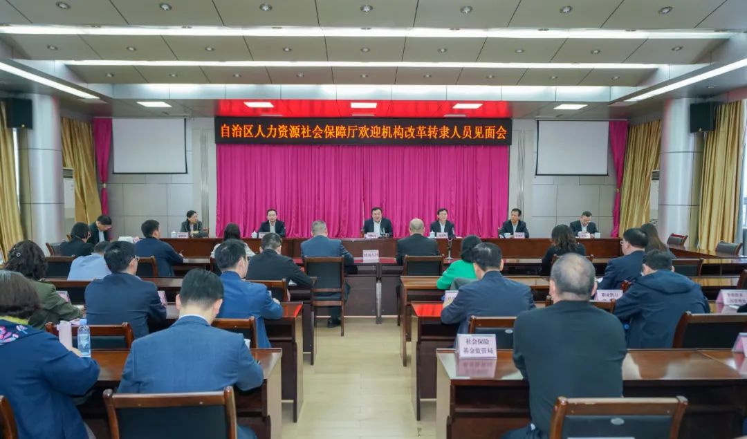 广西壮族自治区人力资源和社会保障厅党组成员与转隶人员合影