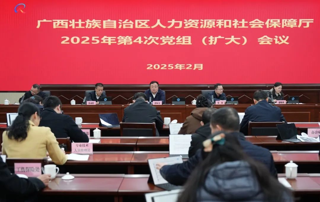 2月6日下午,自治区人力资源社会保障厅召开党组(扩大)会议,传达落实当天上午自治区党委、政府召开的坚持“解放思想、创新求变,向海图强、开放发展”推动经济高质量发展大会精神,研究贯彻落实措施。厅党组书记、厅长唐标文主持会议并讲话。