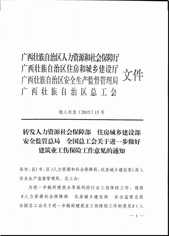 改革开放以来,我国建筑业蓬勃发展,建筑业职工队伍不断发展壮大,为经济社会发展和人民安居乐业做出了重大贡献。建筑业属于工伤风险较高行业,又是农民工集中的行业。为维护建筑业职工特别是农民工的工伤保障权益,国家先后出台了一系列法律法规和政策,各地区、各有关部门积极采取措施,加强建筑施工安全生产制度建设和监督检查,大力推进建筑施工企业依法参加工伤保险,使建筑业职工工伤权益保障工作不断得到加强。但目前仍存在部分建筑施工企业安全管理制度不落实、工伤保险参保覆盖率低、一线建筑工人特别是农民工工伤维权能力弱、工伤待遇落实难等问题。