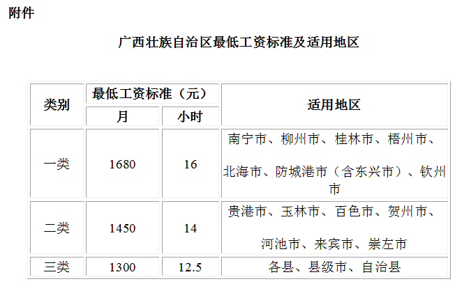 根据《最低工资规定》(中华人民共和国劳动和社会保障部令第21号)和《人力资源社会保障部关于进一步做好最低工资标准调整工作的通知》(人社部发〔2015〕114号)有关要求,结合我区实际情况,现对全区最低工资标准进行适当调整(详见附件),调整后的最低工资标准自2018年2月1日起执行。