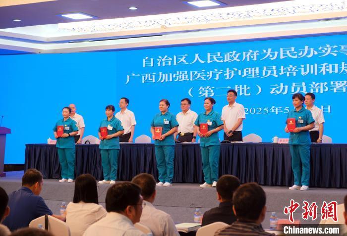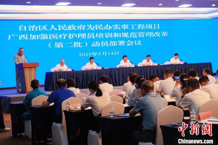 中新网南宁5月16日电 (黄艳梅 吴昕)广西加强医疗护理员培训和规范管理改革(第二批)动员部署会议暨现场交流活动,近日在南宁举行。记者从会上获悉,今年广西力争开展相关职业技能培训2.5万人,实现3万名医疗护理员持健康证、相关职业技能证书上岗,争取服务满意度达98%以上,平均医疗护理费下降30%左右,有效破解“一老一小”陪护难题。