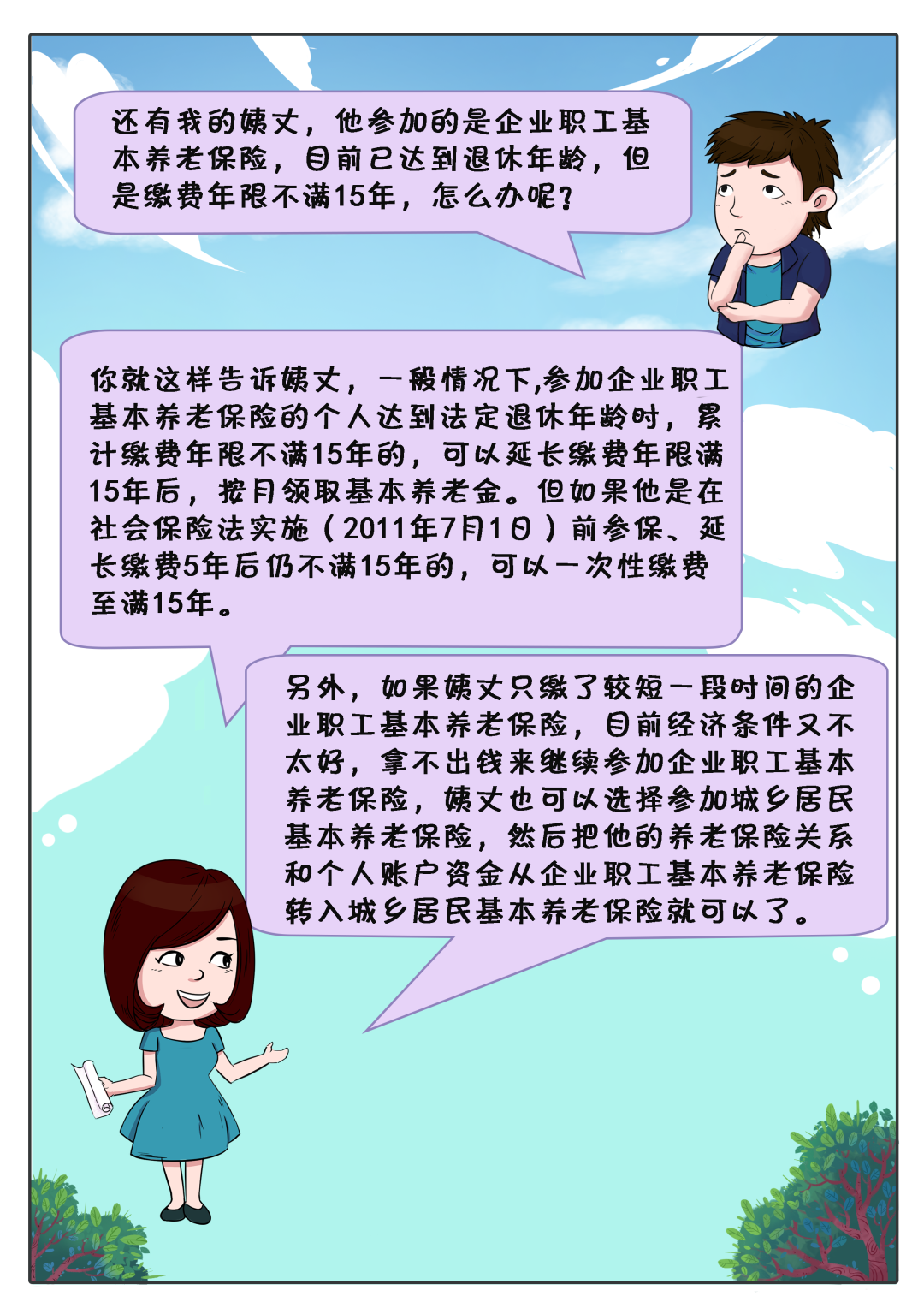 【政策漫画】广西人社政策漫画小剧场——基本养老保险政策,你都知道吗?