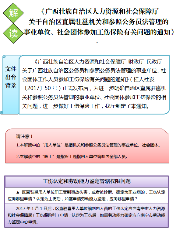 关于《广西壮族自治区人力资源和社会保障厅关于自治区直属驻邕机关和参照公务员法管理的事业单位、社会团体参加工伤保险有关问题的通知》的政策解读